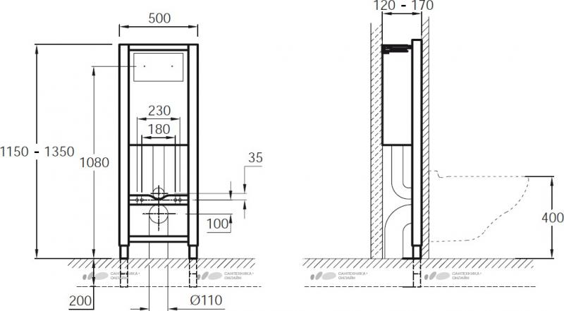 инсталляции компактно скрывает коммуникации, бесшумно работает,